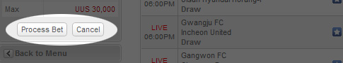 Periksa kembali semua rincian sebelum mengklik tombol " Proses Taruhan " di bawah kotak. Jika Anda membuat kesalahan, klik tombol " Batal " untuk menyetel ulang pilihan Anda.