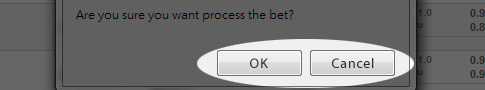 Setelah mengklik " Proses Taruhan ", akan muncul kotak untuk mengkonfirmasi kembali Taruhan Anda. Klik " OK " untuk melanjutkan, atau " Batal " untuk memasukkan kembali taruhan Anda.