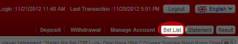 Untuk memasang taruhan untuk pertandingan apapun, Anda harus terlebih dahulu log-in menggunakan ID rekening dan kata sandi Anda. Jika Anda belum memiliki rekening pada kami, silakan klik tab " Daftar " untuk membuka rekening Anda.